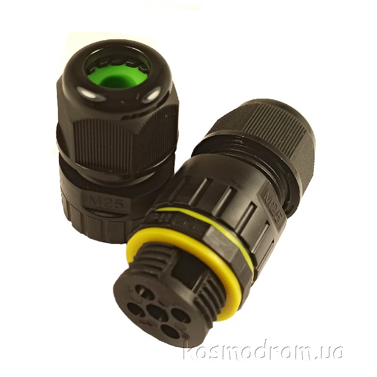 Герметичный кабельный соединитель. Резьба М25. Количество контактов: 2 Диаметр кабеля: 9-12 мм. IP68
