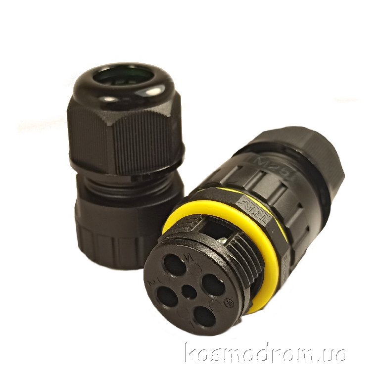 Герметичный кабельный соединитель. Резьба М25. Количество контактов: 4 Диаметр кабеля: 5-9 мм. IP68