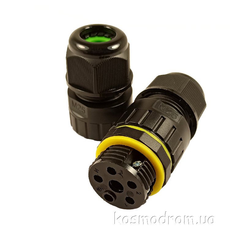 Герметичный кабельный соединитель. Резьба М25. Количество контактов: 5 Диаметр кабеля: 10-14 мм. IP68