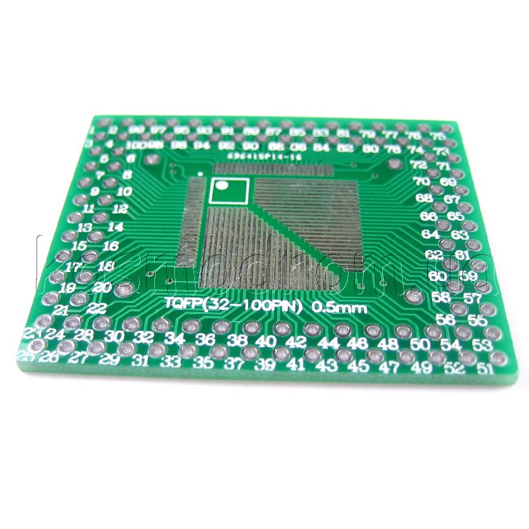 Фото может отличаться от реального вида предмета, но это не влияет на основные характеристики изделия | Макетная плата - адаптер MAKET-PCB-QFP32-100-0.5-0.8 Универсальная макетная плата. Двухсторонняя, для корпусов QFP TQFP LQFP FQFP от 32 до 100 / 32 - 64 выводов с шагом 0,5 и 0,8 мм.