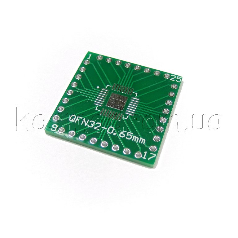 Фото может отличаться от реального вида предмета, но это не влияет на основные характеристики изделия | Макетная плата - адаптер MAKET-PCB-QFP32xQFN32-DIP32 Универсальная двухсторонняя макетная плата, переходник с корпусов QFN32, QFP32 с шагом 0,65 и 0,8 на DIP32
