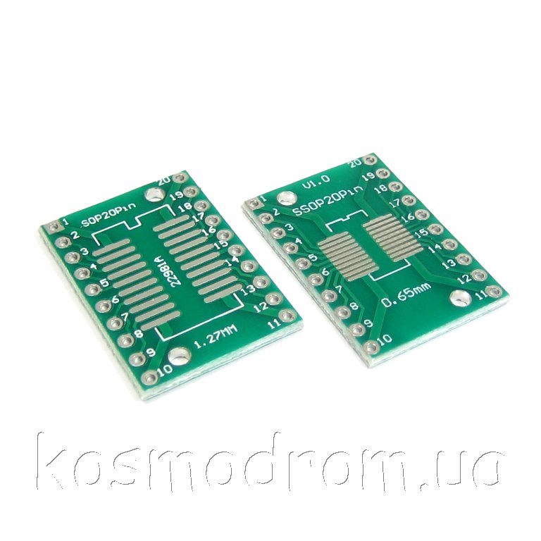 переходник с корпусов SO20; SOP20; SOIC20 с шагом 1,27 на DIP20 с шагом 2,54 мм.