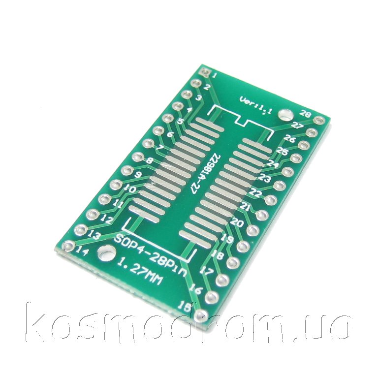 переходник с корпусов SO28; SOP28; SOIC28 с шагом 1,27 на DIP28 с шагом 2,54 мм.