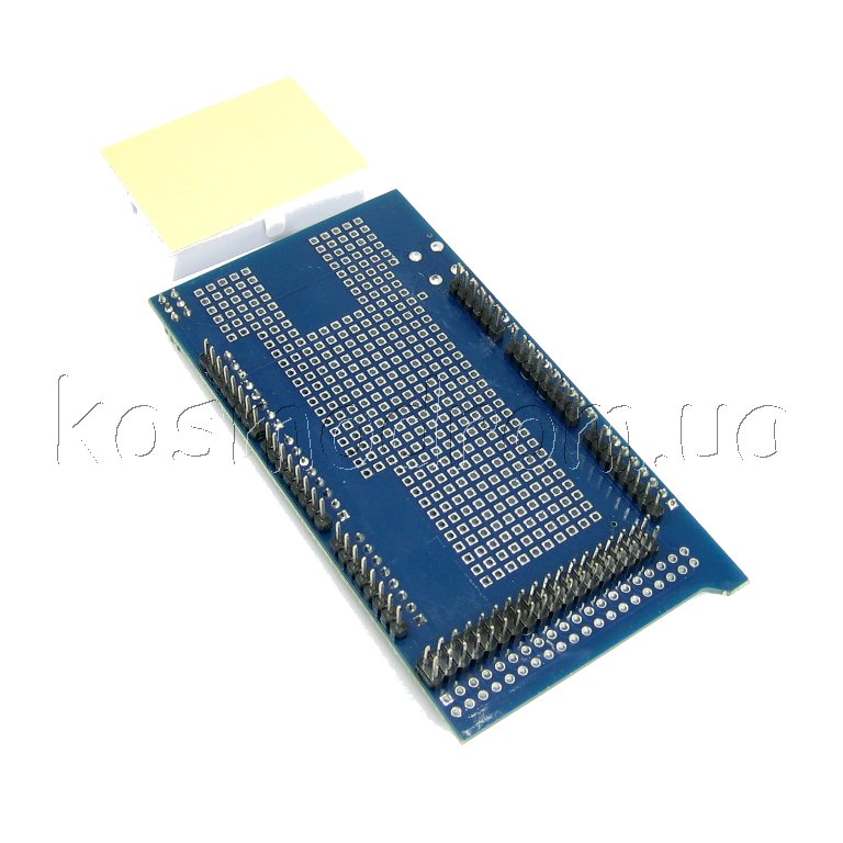 Плату можно подключить непосредственно к Arduino контроллеру типоразмера Arduino Mega. Также можно использовать для фиксации компонентов и контактов прототипа посредством пайки. С помощью платы процесс создания прототипа заметно упрощается и ускоряется.