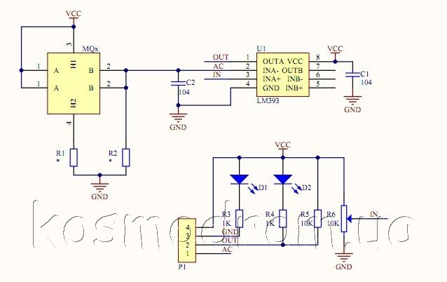 бытовых газов. Датчики реагируют на возникновение в воздухе примесей