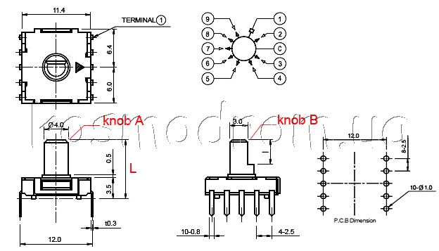 Джойстик, 11,4х12,4 мм. DIP, высота 8 мм.