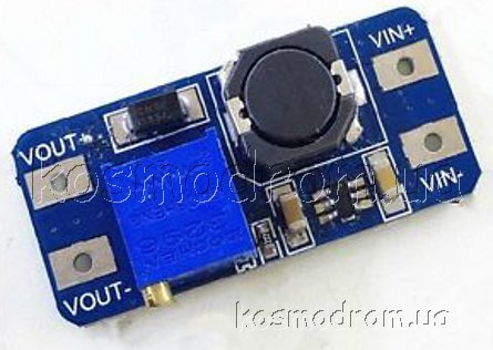 Повышающий импульсный преобразователь напряжения предназначен для получения напряжения до 28 вольт с током нагрузки до 2A от низковольтного источника напряжения. Регулятор на плате преобразователя позволяет выбрать необходимый уровень выходного напряжения.