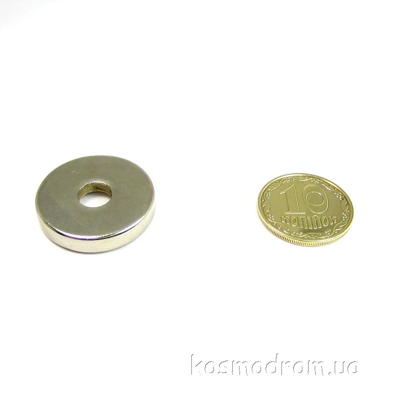 Фото может отличаться от реального вида предмета, но это не влияет на основные характеристики изделия | Магнит Magnet-20X4-5 Магнит неодимовый, шайба с отверстием, диаметр 20 мм. Высота: 4 мм (+/- 0,4). Диаметр отверстия: 5 мм. N50. Напр. магн. поля: Аксиальное. Возможны незначительные сколы без повреждения структуры магнита