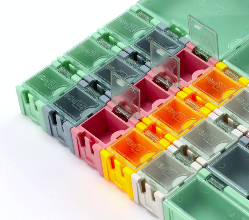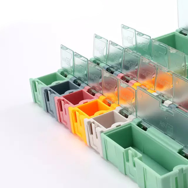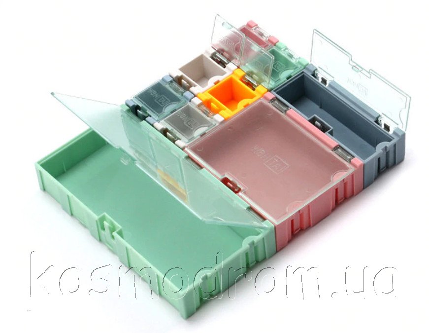 Универсальный пластиковый контейнер для хранения различных компонентов, SMD элементов, подручных инструментов и т.п. Выполнен из полипропилена с прозрачной крышкой.