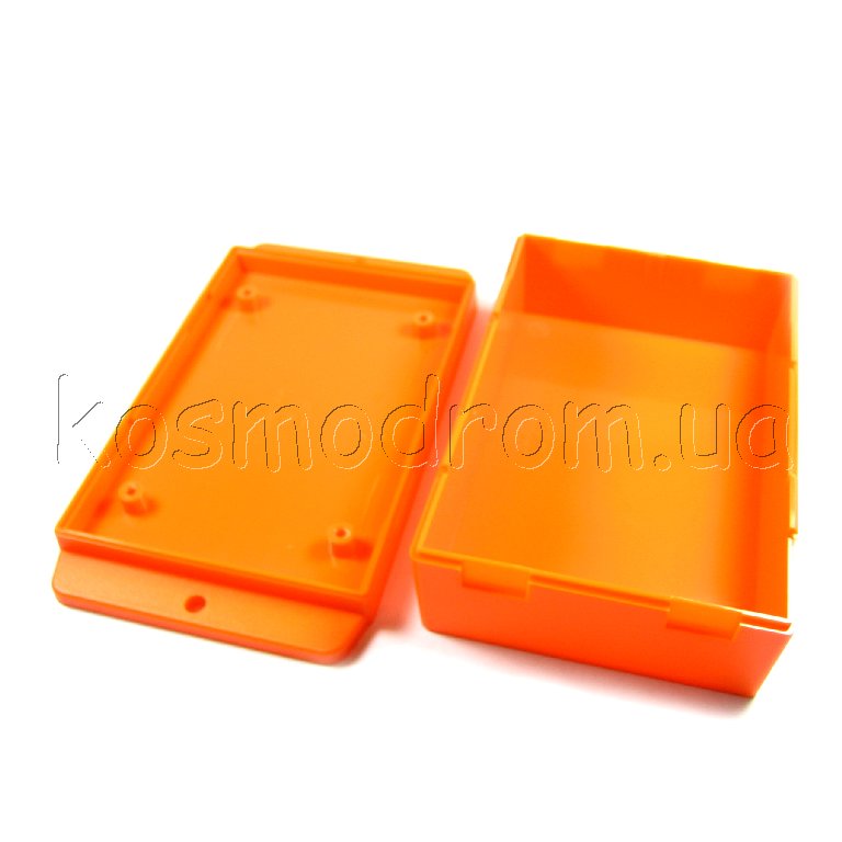 Фото может отличаться от реального вида предмета, но это не влияет на основные характеристики изделия | Корпус NUB1057035OR корпус оранжевого цвета с фланцами,из ABS пластика UL-94HB. размеры:105х70.6х35.5мм.