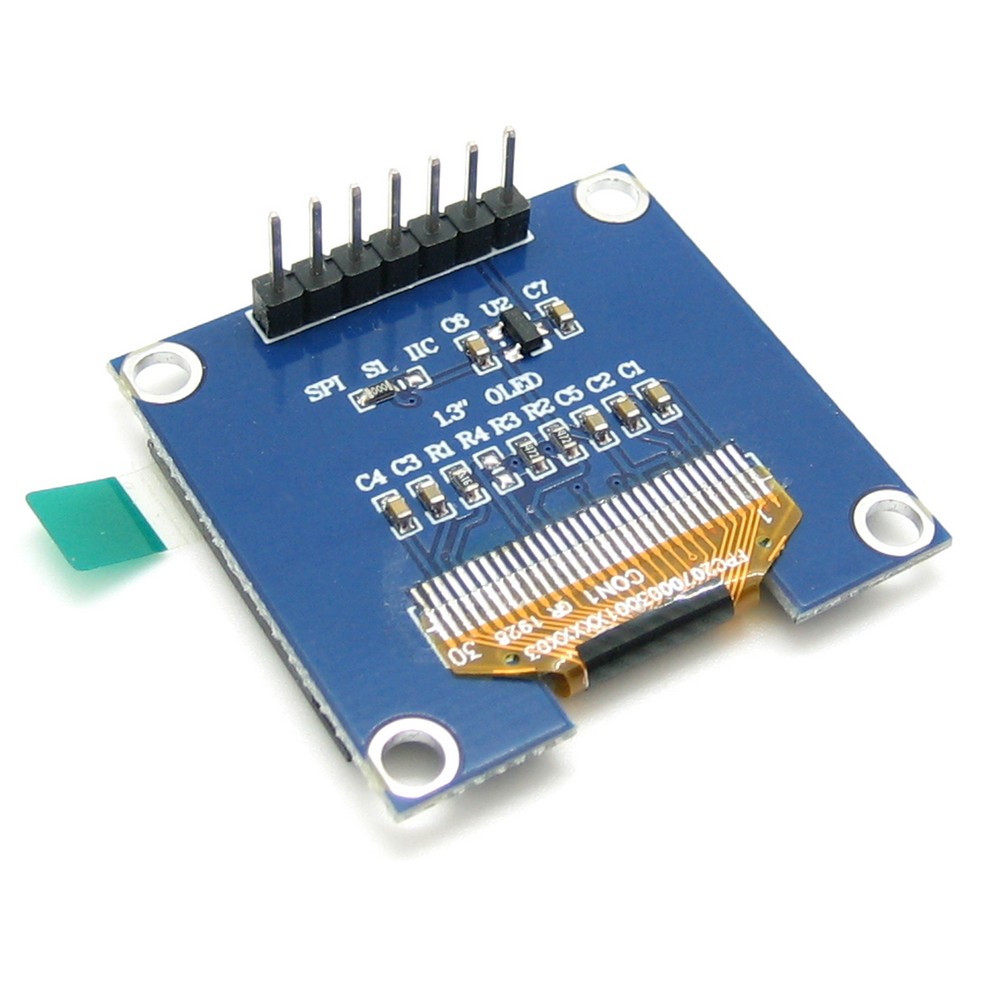 Дисплей диагональю 1,3" выполнен по технологии OLED, благодаря чему, не нуждается в подсветке в отличии от ЖК дисплеев. OLED-1.30-128X64 выполнен из 128х64 отдельных белых OLED пикселей, каждый из которых управляется с помощью микросхемы контроллера. Дисплей поддерживает SPI интерфейс.