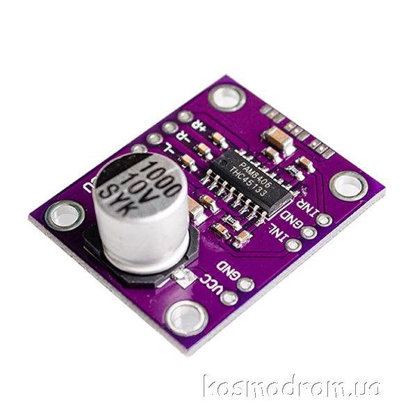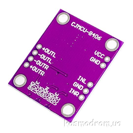 Модуль стерео усилителя звука на микросхеме PAM8406 с выходной максимальной мощностью до 5Вт на канал при нагрузке 4 Ом.