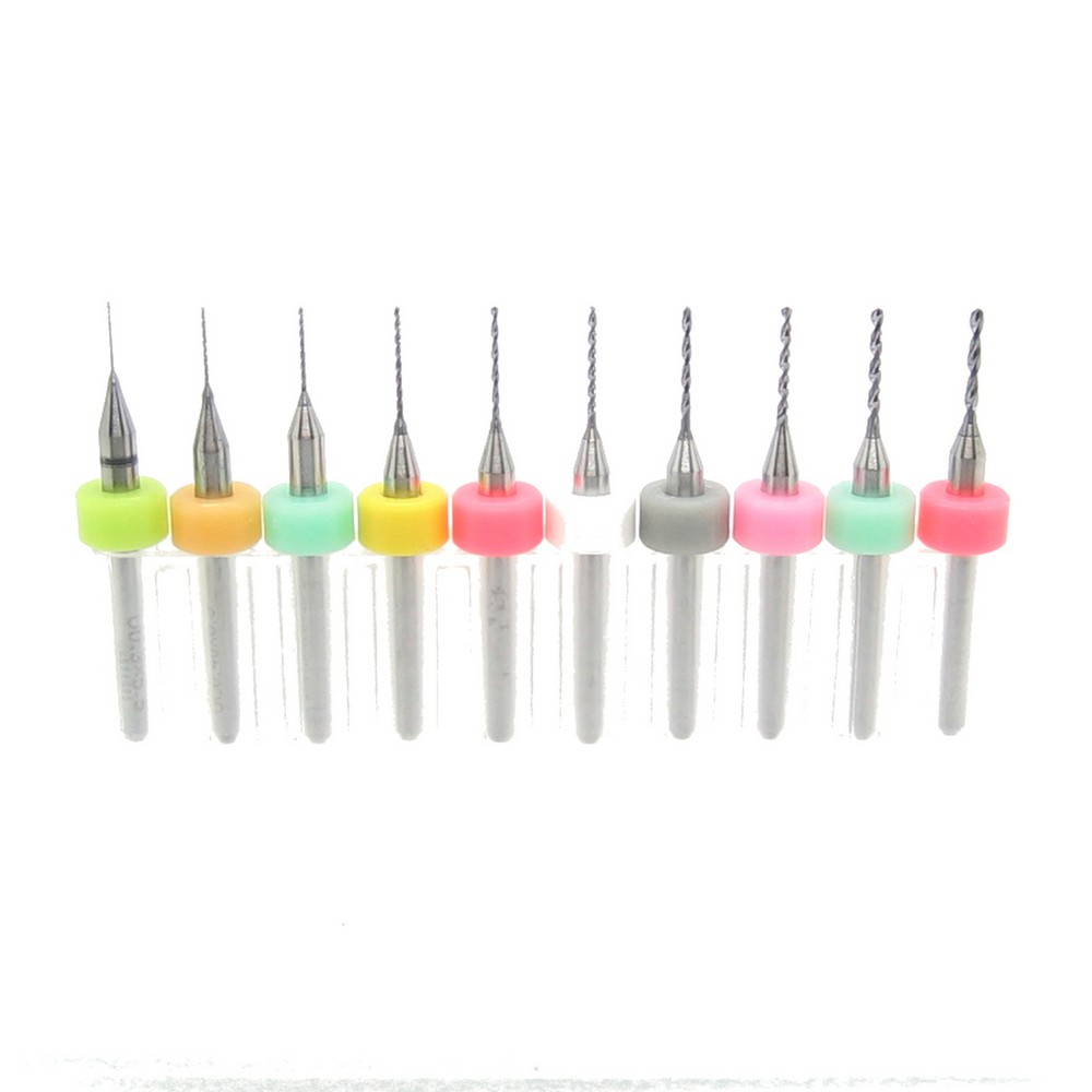 имеется 10 высококачественных сверл для получения отверстий с диаметром от 0.3