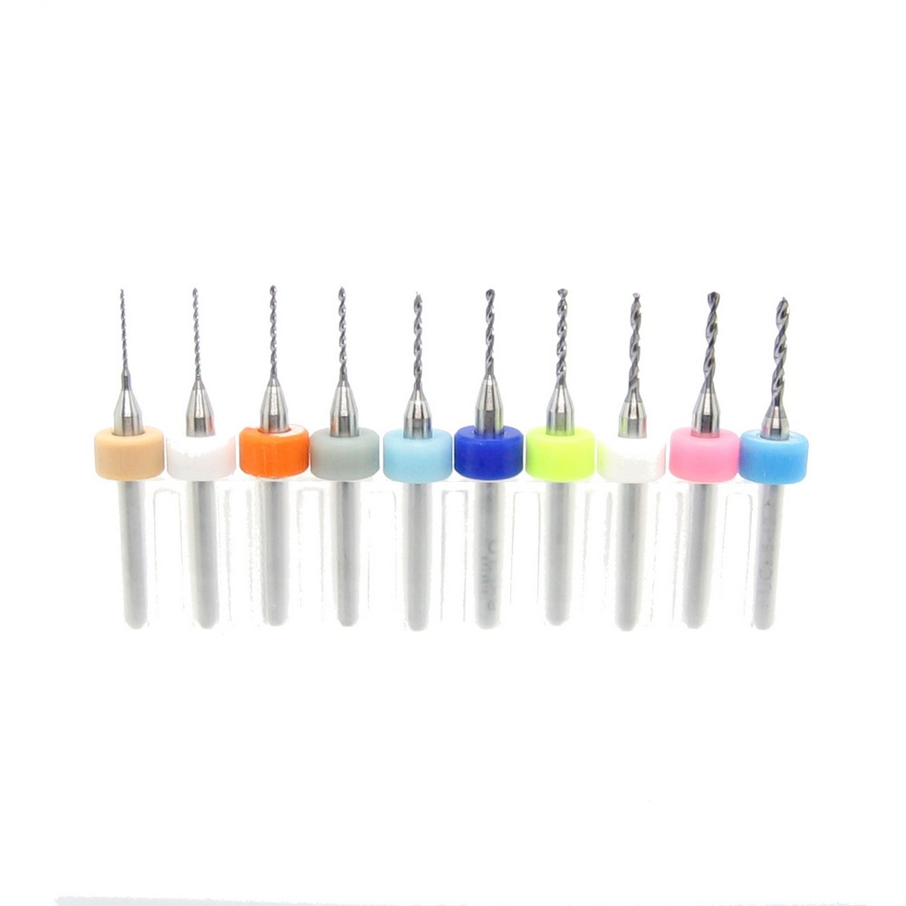Для тех, кто занимается самостоятельным созданием печатных плат, очень важным моментом является подбор необходимого диаметра сверла. Данный набор подойдет как нельзя кстати. В наборе имеется 10 высококачественных сверл для получения отверстий с диаметром от 0.6 до 1.5 мм. Сверла используются совместно со сверлильным станком вертикального типа. Сверла тонкие и достаточно хрупкие, поэтому требуют большой осторожности и аккуратности в работе. Хвостовики сверл имеют диаметр 3.175 мм, что позволяет использовать их с миниатюрными головкам сверлильных станков. На хвостовике каждого сверла имеется пластиковый ограничитель, чтобы сверла не проваливались в головку.