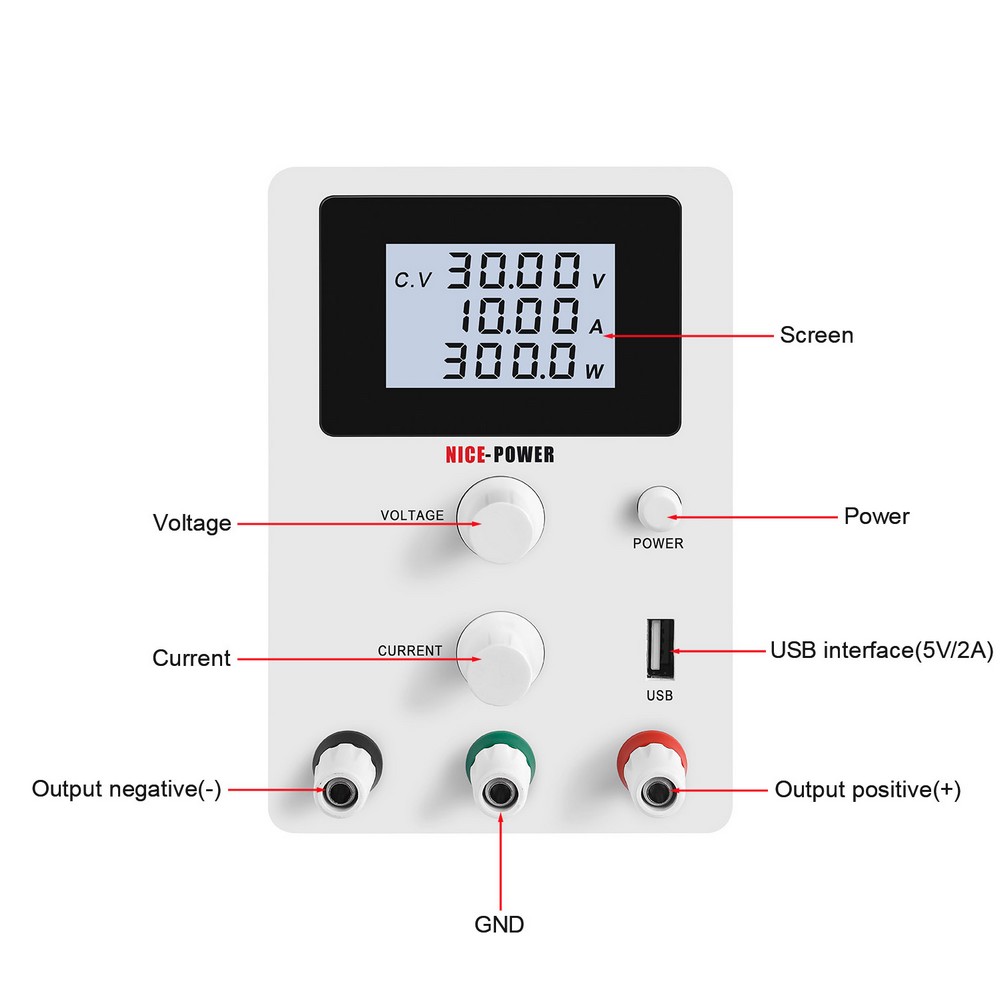 R-SPS3010D 4Digits 30V 10A одновременно отображает напряжение, ток и мощность.