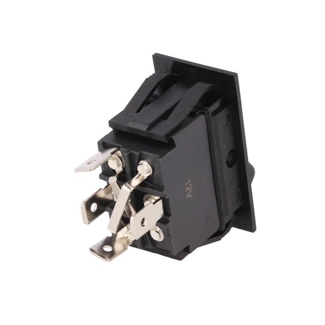 Фото может отличаться от реального вида предмета, но это не влияет на основные характеристики изделия | Микропереключатель рокерный R13-220BC-01-BBRY ROCKER, SPDT, Пол: 2, ON-ON, 20A/12VDC, черный, LED,точечная, 12VDC