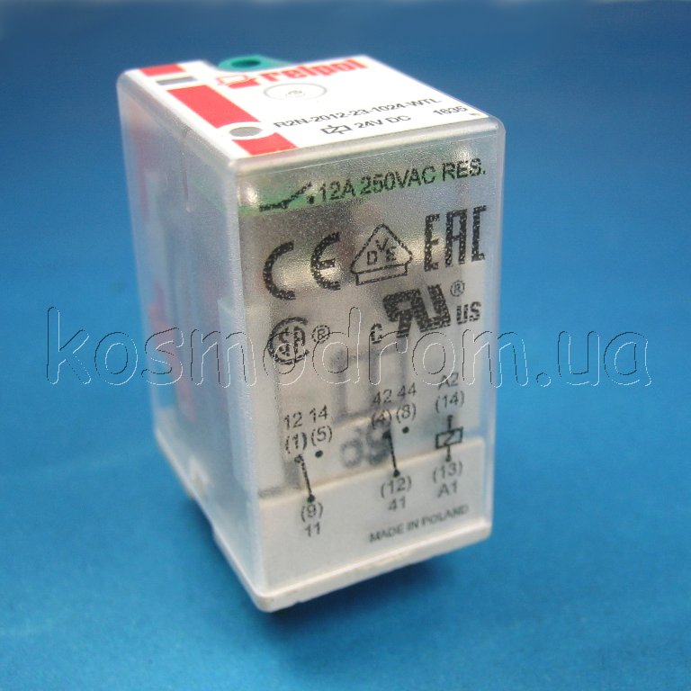 Фото может отличаться от реального вида предмета, но это не влияет на основные характеристики изделия | Реле электромеханическое R2N2012231024WTL Реле: электромагнитное, 2С (DPDT), Uобмотки:24VDC, комм. 12A 250VAC/24VDC, Размер:27.5x21.2x35.6мм