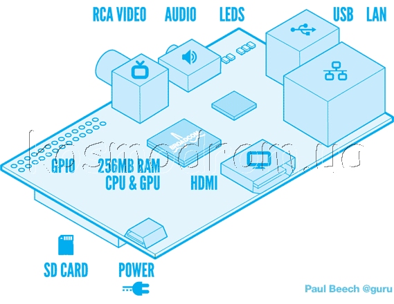 Raspberry Pi — миниатюрный (85x56 мм), персональный