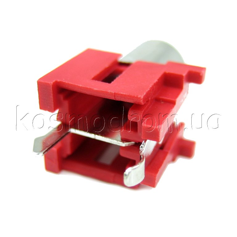RCA разъем (тюльпан) мама для монтажа на плату, вертикально, пластиковый корпус, красный, контакты никелированные. 2 контакта.