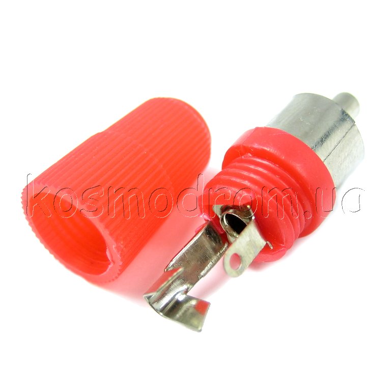 Фото может отличаться от реального вида предмета, но это не влияет на основные характеристики изделия | Разъем RCA RCA-PM02-N-R RCA разъем (тюльпан), папа, пластиковый корпус, красный, контакты никелированные, диам. кабеля 4,7 мм.
