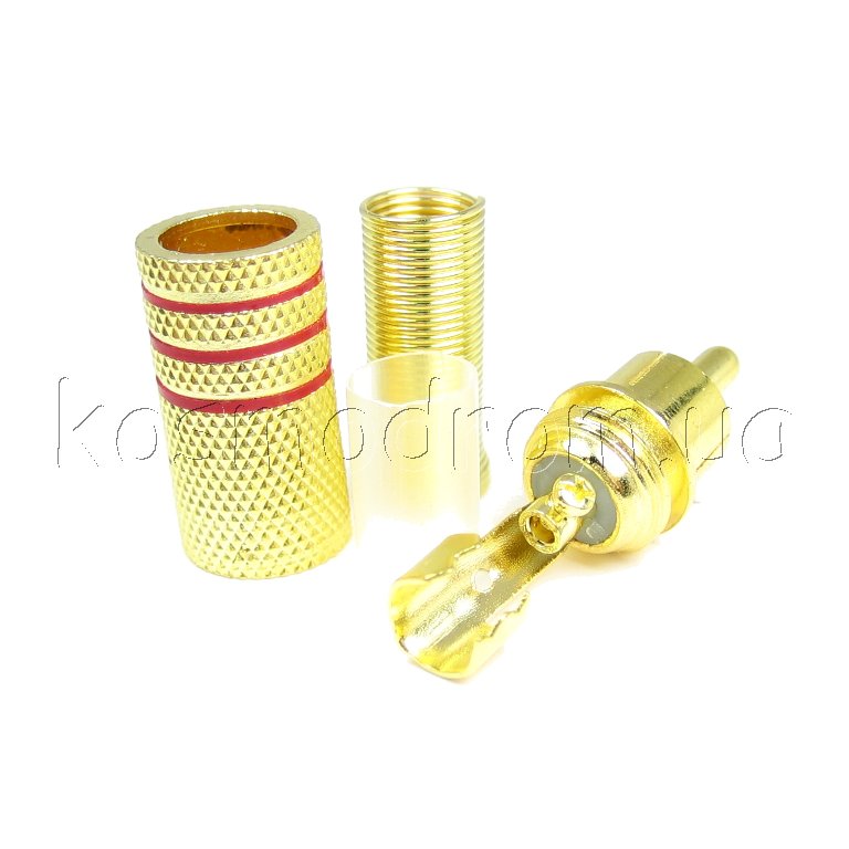 Фото может отличаться от реального вида предмета, но это не влияет на основные характеристики изделия | Разъем RCA RCA-PM03-G-R-W-6.5 RCA разъем (тюльпан), папа, металлический корпус, цвет маркировки: красный, контакты позолоченные, диам. кабеля 6,5 мм. с винтом