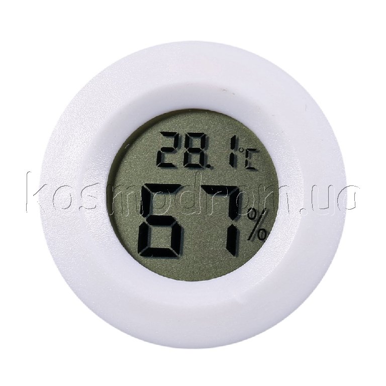 Фото может отличаться от реального вида предмета, но это не влияет на основные характеристики изделия | Термометр, гигрометр, влагомер ROUND-Thermometr-Hygrometer-WHITE Цифровой измеритель температуры и влажности. Диапазон измерения температур: -50...+70 С., влажности 10...99 %. LCD дисплей, круглый корпус, белый. БЕЗ БАТАРЕЙКИ