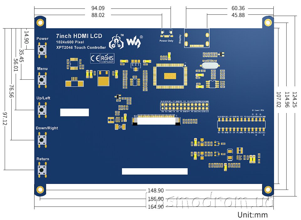 Фото может отличаться от реального вида предмета, но это не влияет на основные характеристики изделия | Одноплатный компьютер Raspberry Raspberry 7 Inch 1024x600 LCD HDMI Сенсорный LCD HDMI экран для Raspberry Pi. Разрешение: 1024 х 600 пикселей. 7 дюймов.