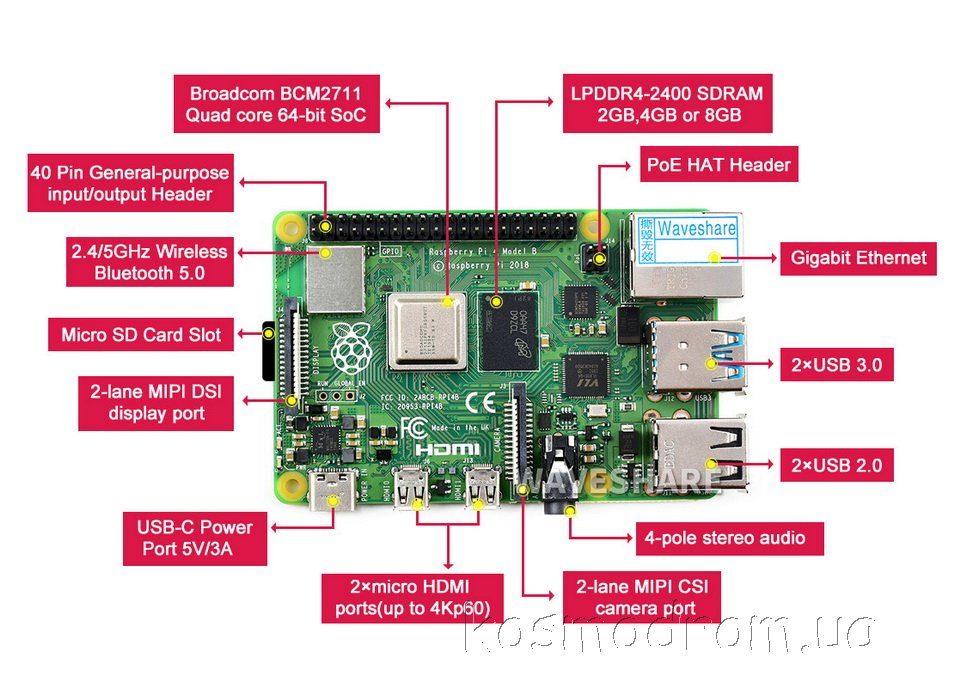 используется однокристальная система Broadcom BCM2711. Кристалл включает