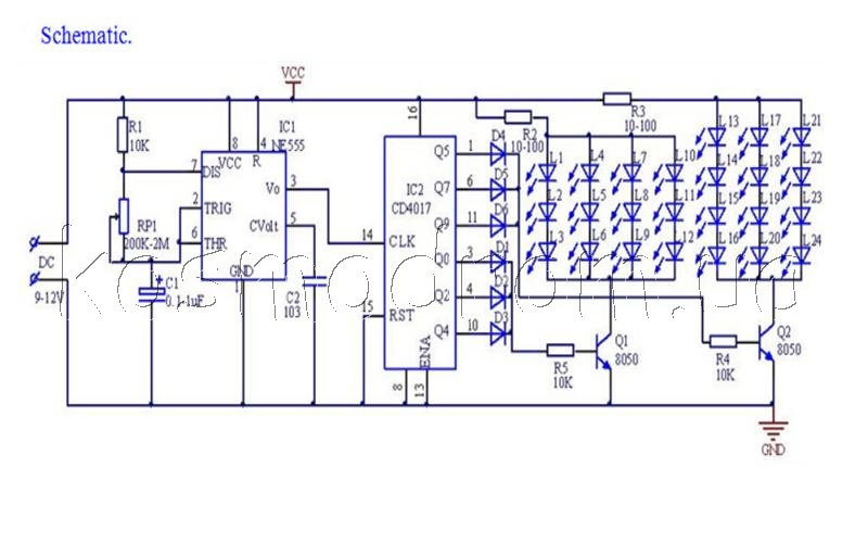 Радиоконструктор на основе таймера NE555 и счетчика CD4017. Набор