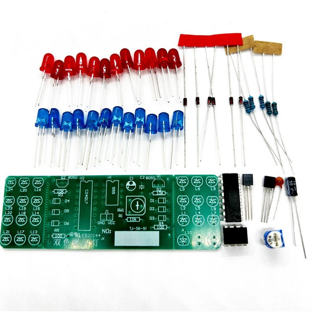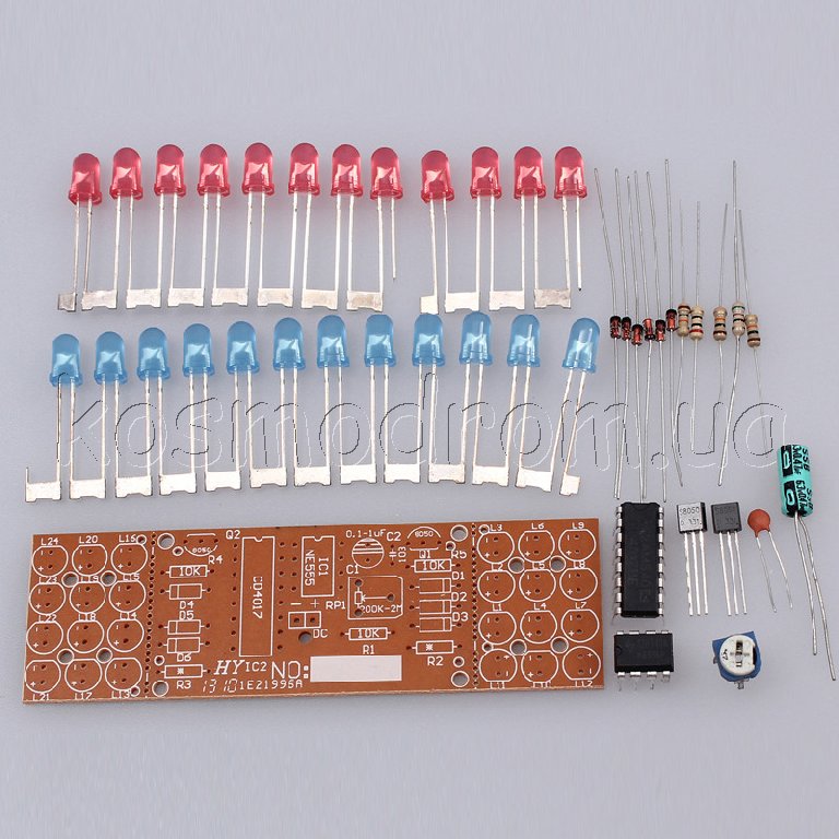 Фото может отличаться от реального вида предмета, но это не влияет на основные характеристики изделия | Электронный набор RedBlueColorFlashing Радиоконструктор, стробоскоп (полицейская сирена) на основе NE555 и CD4017.