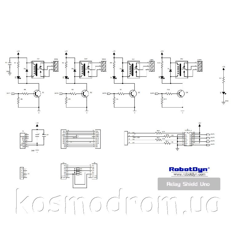 Реле и клеммы вынесены за пределы зоны платы контроллера Arduino,