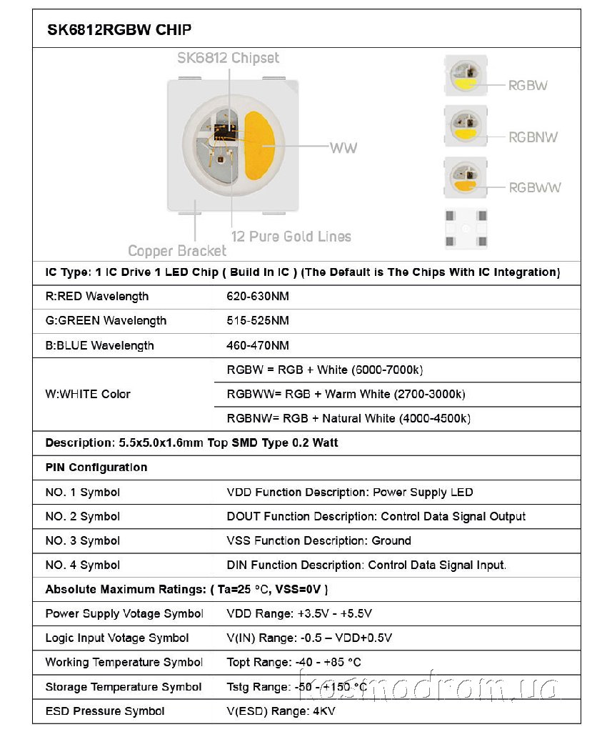 По характеристикам SK6812 также немного отличается от WS2812.