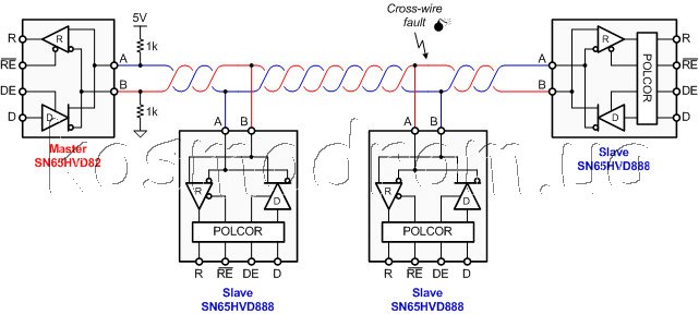 в SN65HVD888 встроена защита от перенапряжения на шине данных до