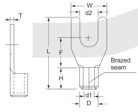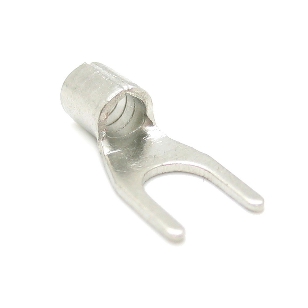 Фото может отличаться от реального вида предмета, но это не влияет на основные характеристики изделия | Наконечник вилочный SNB3.5-5 Исполнение: Вилка, Сечение провода: 14-12 AWG (2,5 - 4 мм2), Imax = 37A.