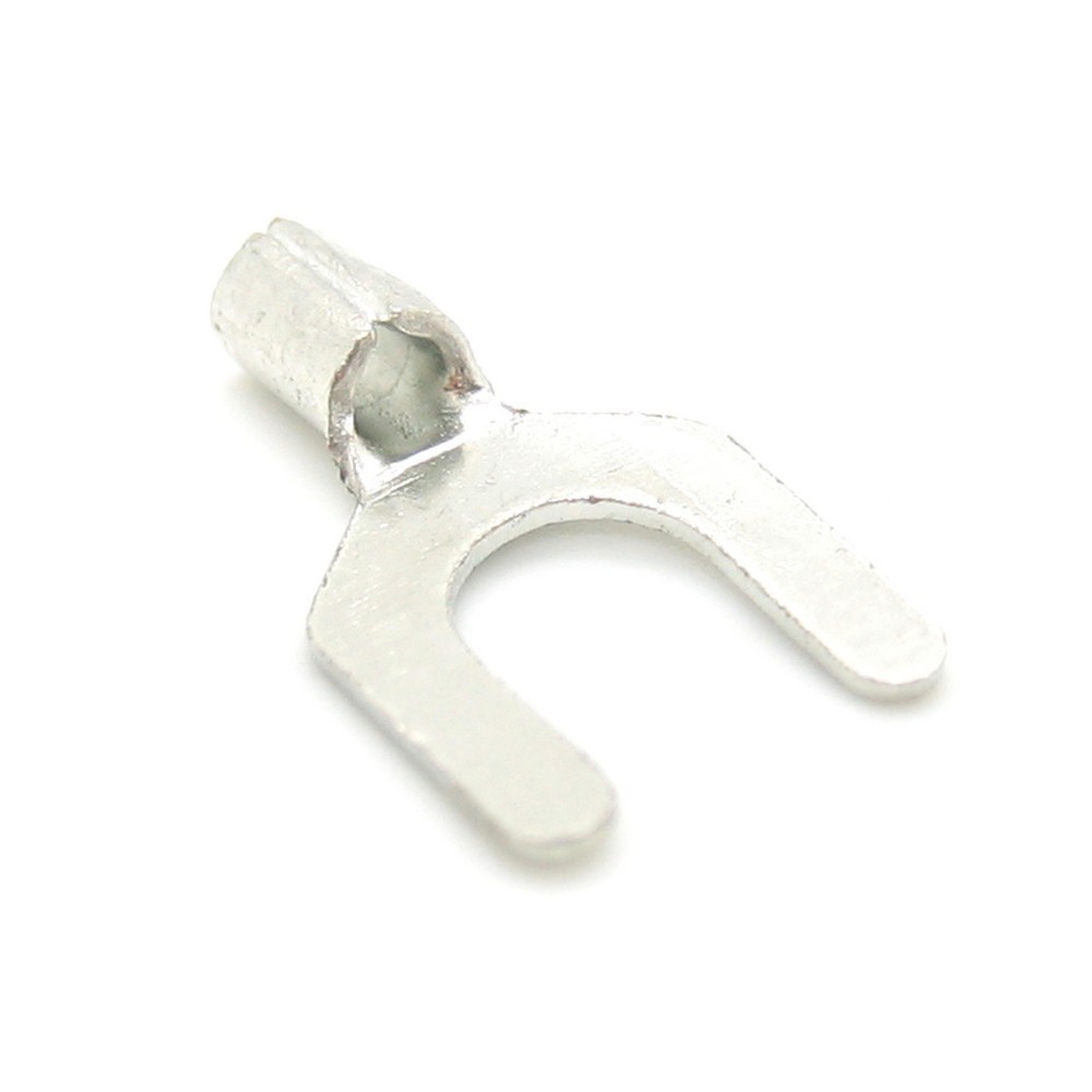 Фото может отличаться от реального вида предмета, но это не влияет на основные характеристики изделия | Наконечник вилочный SNBL1.25-5 Исполнение: Вилка, Сечение провода: 22-16 AWG (0,5 - 1,5 мм2), Imax = 19A.