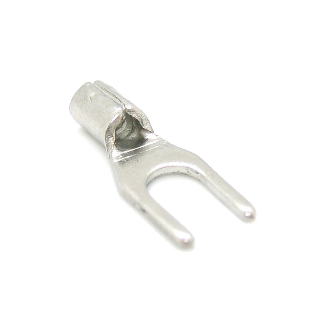 Фото может отличаться от реального вида предмета, но это не влияет на основные характеристики изделия | Наконечник вилочный SNBS1.25-3.5 Исполнение: Вилка, Сечение провода: 22-16 AWG (0,5 - 1,5 мм2), Imax = 19A.