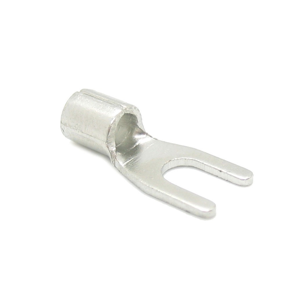 Фото может отличаться от реального вида предмета, но это не влияет на основные характеристики изделия | Наконечник вилочный SNBS5.5-4 Исполнение: Вилка, Сечение провода: 12-10 AWG (4 - 6 мм2), Imax = 48A.
