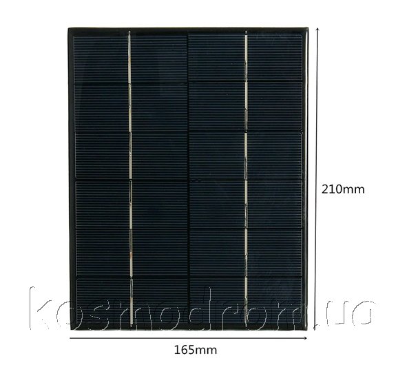 Солнечная батарея из поликристаллического кремния. Мощность: 5,2 Вт. Рабочее напряжение 6 В. Размеры: 165х210 мм.