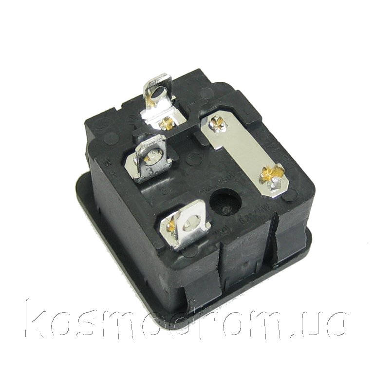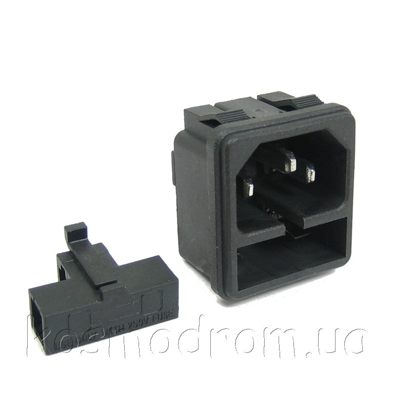 Разъем 220V. Вилка. на блок, 3 контакта, с отсеком для предохранителя, крепление защелка