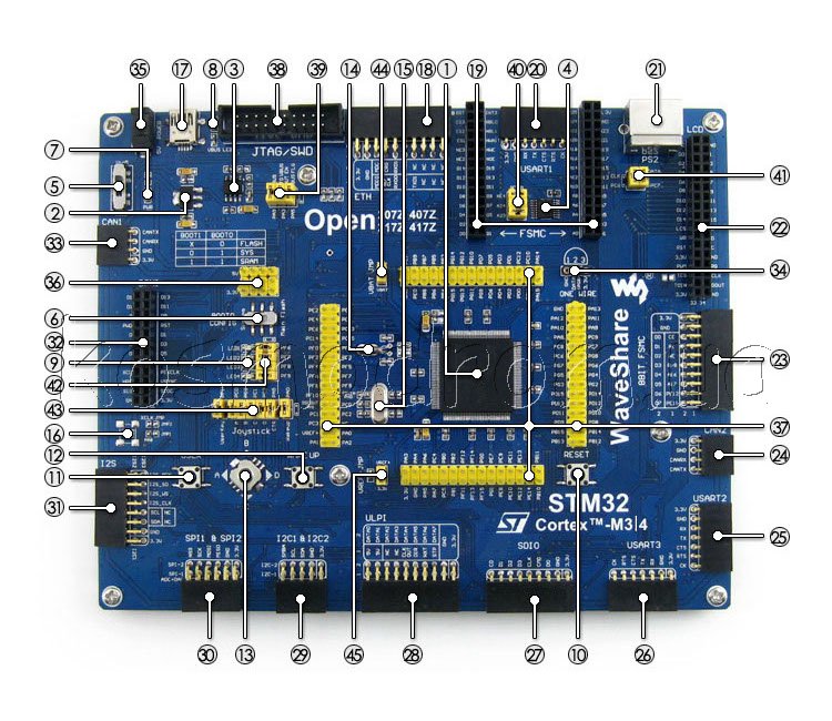 20.USART1 interface: easily connects to RS232, RS485, USB TO