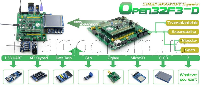 плату расширения для популярной оценочной платы STM32F3DISCOVERY,
