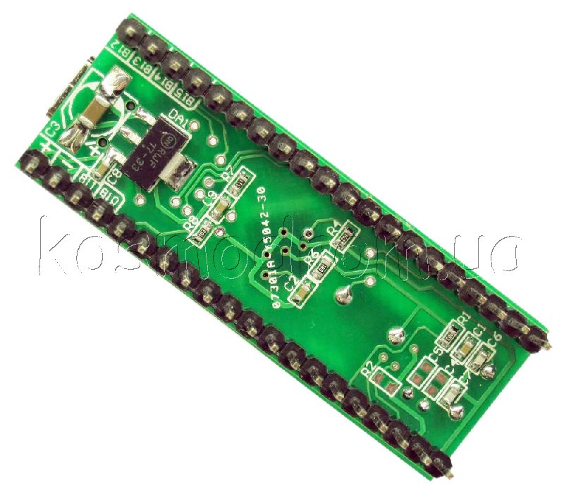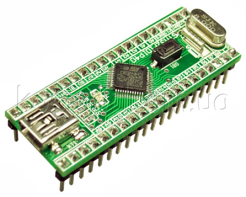 STM32F103-DIP40 - это простой в использовании модуль для макетирования, построенный на базе современного ARM Cortex-M3 микроконтроллера STM32F103C8T6. Данный микроконтроллер имеет высокую производительность и может работать на частоте до 72Мгц. Контроллер имеет 64 килобайта внутренней Flash памяти и может быть запитан непосредственно от USB. Кроме всего прочего STM32F103C8 имеет очень богатую периферию: USB, SPI, DMA, I2C, USART, ADC и прочее.