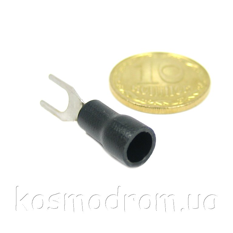 Наконечник кабельный вилочный (клемма) с изоляцией. Диам. отверстия под болт 3,2 мм, провод 0.5-1.5 мм. Цвет изолятора: черный