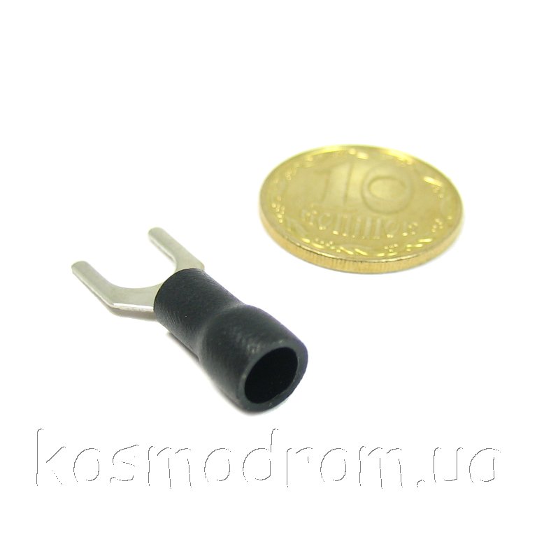 Наконечник кабельный вилочный (клемма) с изоляцией. Диам. отверстия под болт 5,3 мм, провод 0.5-1.5 мм. Цвет изолятора: черный