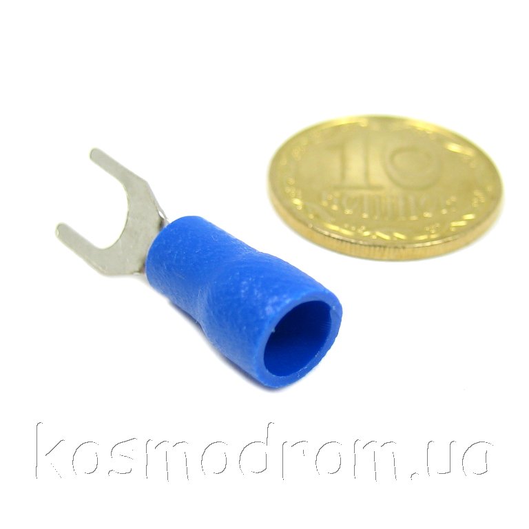 Наконечник кабельный вилочный (клемма) с изоляцией. Диам. отверстия под болт 4,3 мм, провод 1.5-2.5 мм. Цвет изолятора: синий