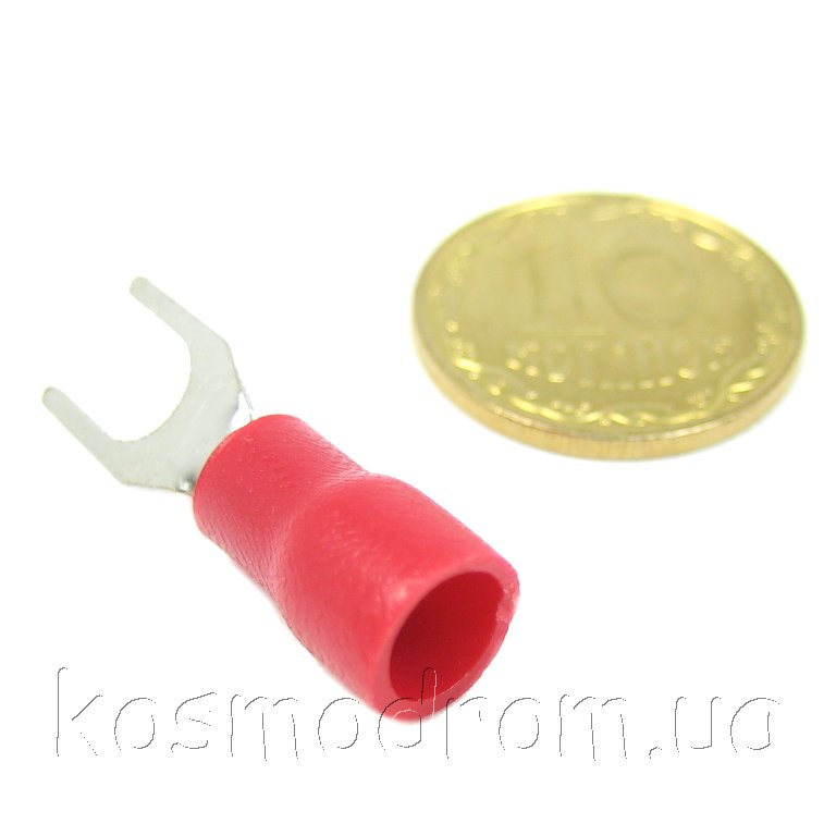 Наконечник кабельный вилочный (клемма) с изоляцией. Диам. отверстия под болт 4,3 мм, провод 1.5-2.5 мм. Цвет изолятора: красный