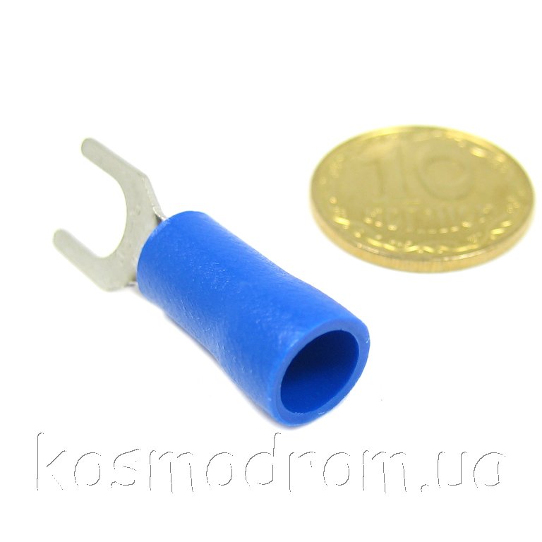 Наконечник кабельный вилочный (клемма) с изоляцией. Диам. отверстия под болт 5,3 мм, провод 2.5-4 мм. Цвет изолятора: синий