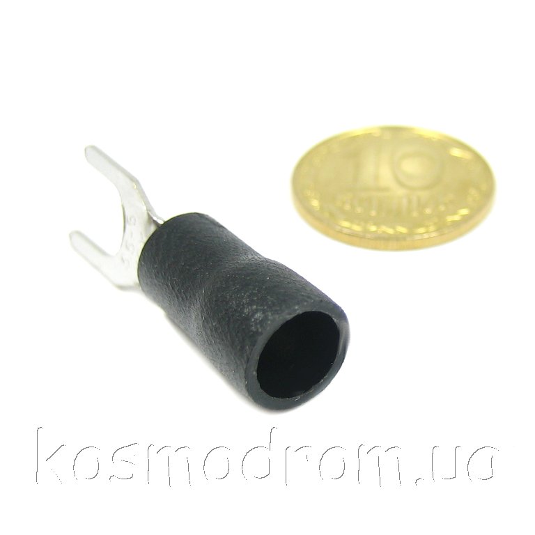 Наконечник кабельный вилочный (клемма) с изоляцией. Диам. отверстия под болт 5,3 мм, провод 4-6 мм. Цвет изолятора: черный