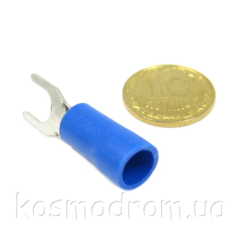 Наконечник кабельный вилочный (клемма) с изоляцией. Диам. отверстия под болт 5,3 мм, провод 4-6 мм. Цвет изолятора: синий