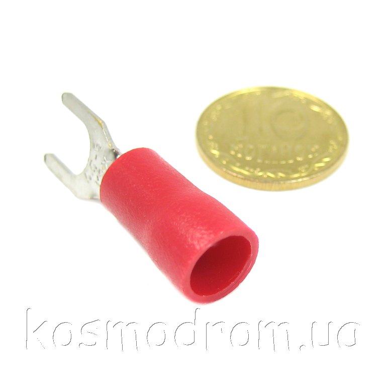 Наконечник кабельный вилочный (клемма) с изоляцией. Диам. отверстия под болт 5,3 мм, провод 4-6 мм. Цвет изолятора: красный